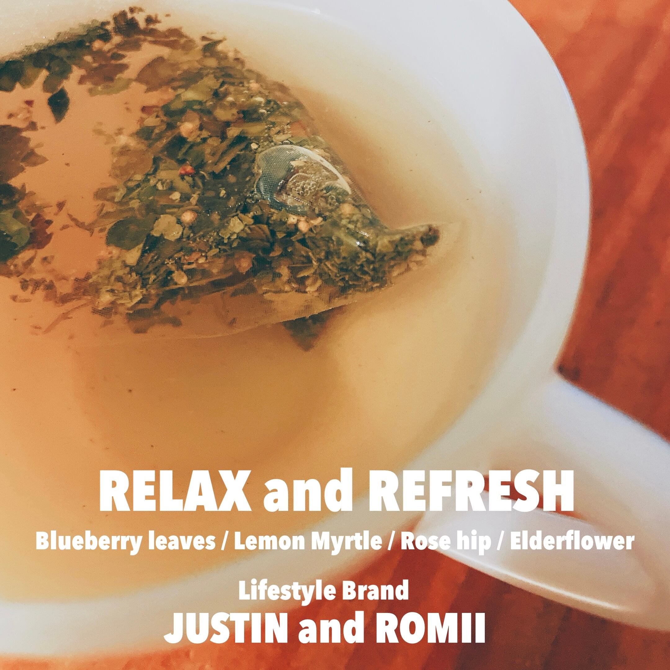 古参品種ブルーベリー葉のブレンドハーブティー『RELAX and REFRESH』オーガニックレモンマートル&ローズヒップ&エルダーフラワー [TEA BAG10個入り] | JUSTIN and ROMII